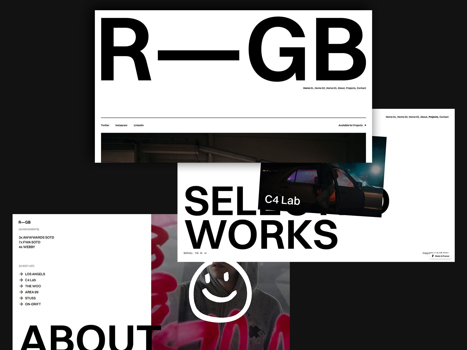 🚨 Limited Offer: Get the Complete Framer BundleGET THE BUNDLE_______________________R—GB® is a template designed for portfolios, agencies, catering to a diverse range of creative needs. LIVE PREVIEW FEATURES 3 Home Page VersionsWorks PageContact PageProjects CMS PageAbout PageMobile optimizedFully responsiveEasy to customize WE ARE A FRAMER PARTNER Automatically Get 3 free months on a Pro annual FRAMER subscription when subscribe from our templates! PLATFORM Template has been built on Framer. Upon completion of your purchase, you will receive a remix link that allows you to duplicate the template to your own Framer account. SUPPORTContact us for seamless support. Our dedicated team is here to assist you with expert guidance and custom Framer services. Reach out to us at [email protected] for personalized assistance.
